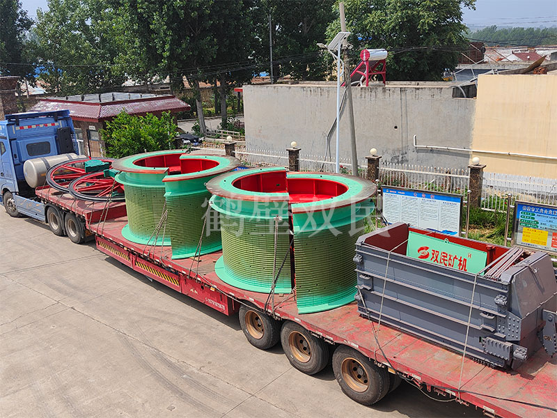 鶴壁雙民發(fā)往新疆的3米雙筒礦井提升機(jī)裝車出貨!