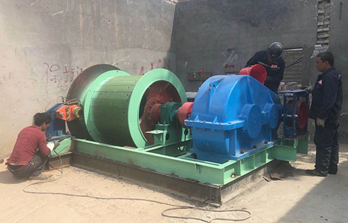 該提升絞車的主軸裝置有固定卷筒、活動卷筒(僅雙筒用)主軸、兩個軸承座、調繩機構(僅雙筒用)等部分組成,用來纏繞或釋放鋼絲繩。單筒提升絞車鋼絲繩為上出繩,雙筒提升絞車活動卷筒為下出繩,固定卷筒為上出繩,卷筒上裝有襯木。
