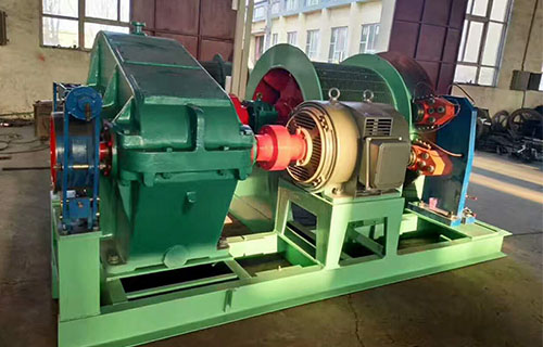 該提升絞車的主軸裝置有固定卷筒、活動卷筒(僅雙筒用)主軸、兩個軸承座、調繩機構(僅雙筒用)等部分組成,用來纏繞或釋放鋼絲繩。單筒提升絞車鋼絲繩為上出繩,雙筒提升絞車活動卷筒為下出繩,固定卷筒為上出繩,卷筒上裝有襯木。